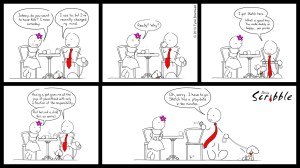 Published at johnnyscribble.com on February 20, 2013. First appearance of Sketch (the dog).